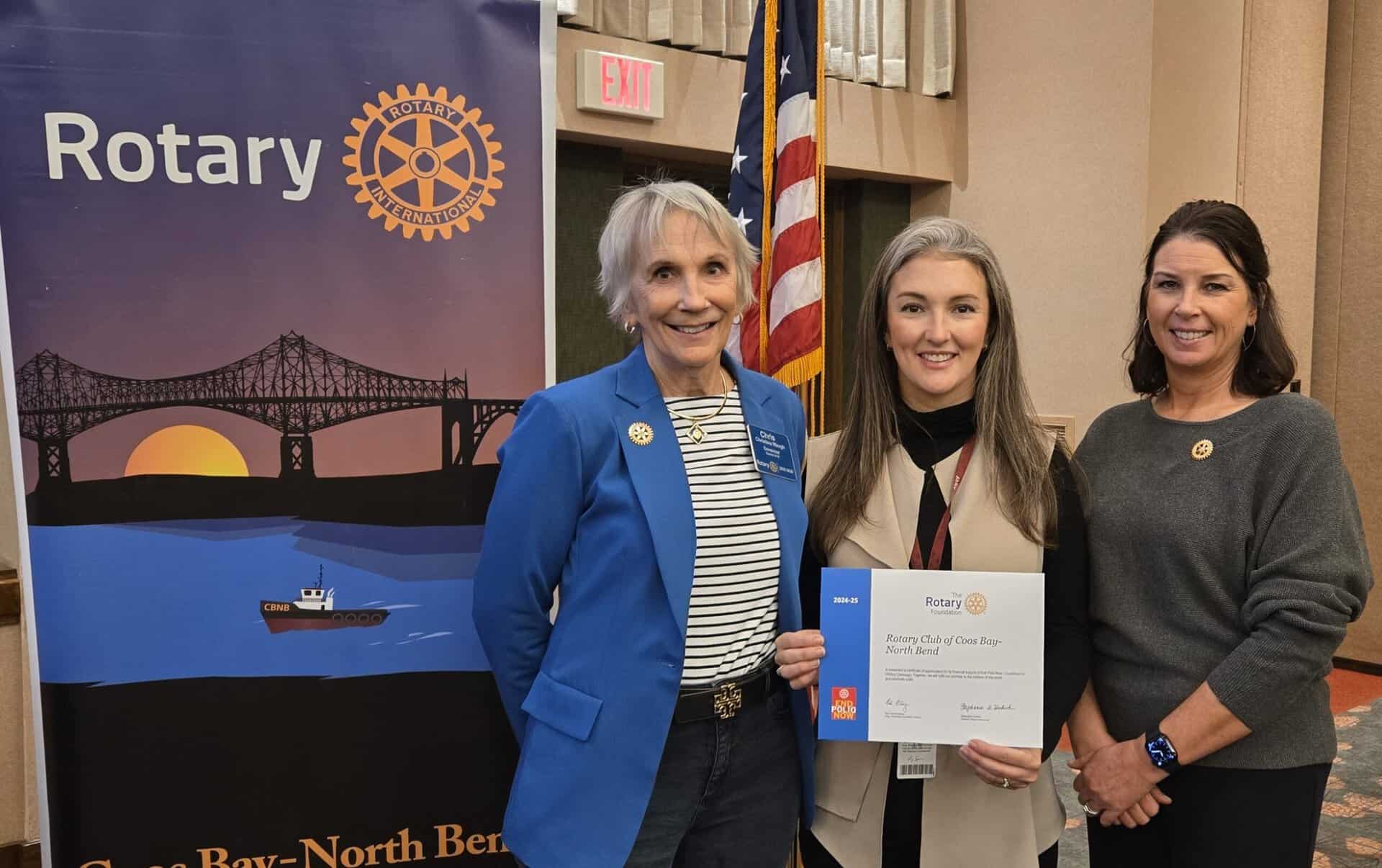 Coos Bay-North Bend Club meets at the Ko-Kwel (previously Mill) Casino. The club has co-presidents: Amy Bailey and Heidi Proett.